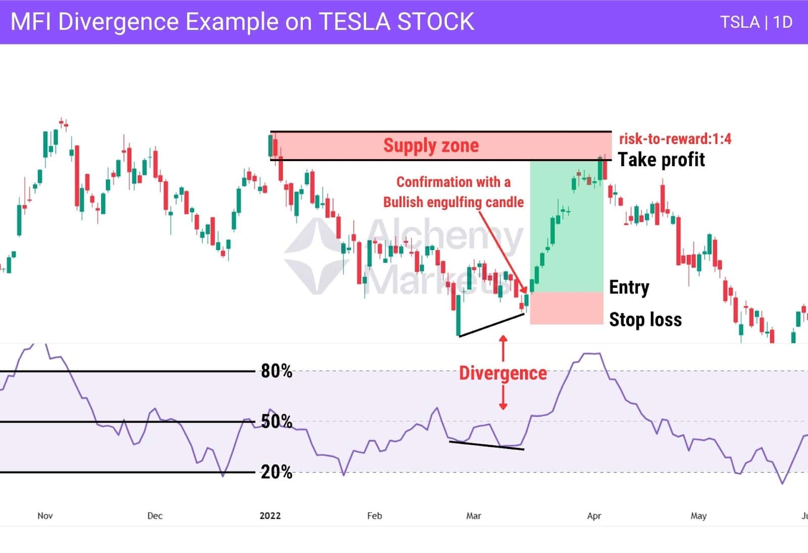 (그의 반대로도) MFI가 과매수(80 이상)에서 턴을 한다면, 고점을 확인한 시그널. 열광일 때 매도.